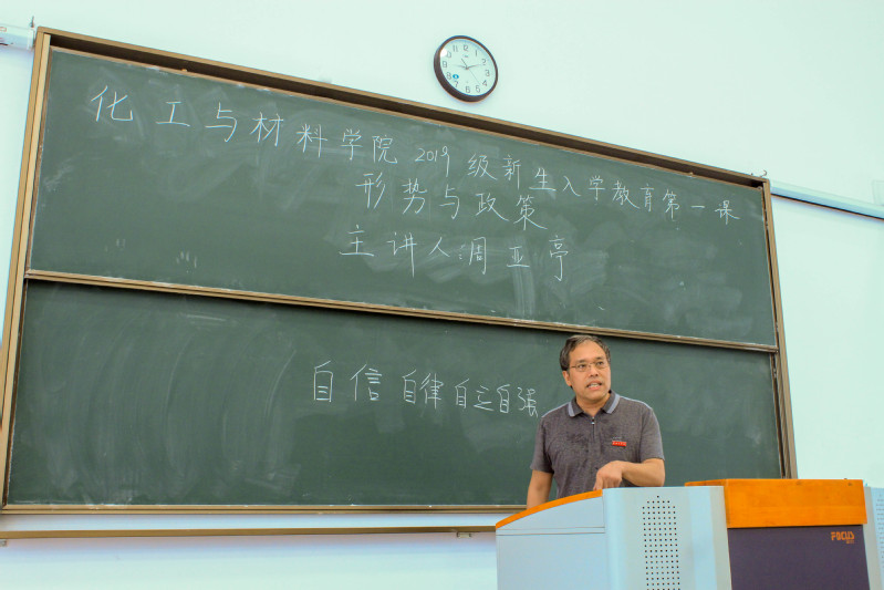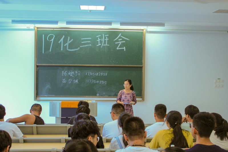 第二阶段是由员工党支部书记和专业系主任对新生进行了专业启蒙教育和思想引领。员工第一党支部书记孙潇楠老师围绕着“看人,就是看气质”的主题展开,强调了我们要有爱国气质,爱校气质和爱专业气质;化工系系主任魏雪娇老师介绍了化学工程与工艺的专业概况和基本学习方法及要求。另一边,第二员工党支部书记许鹏老师为应化系员工展开了“突出思想引领 强化职业素能思想”的主题教育,他希望每一位新生在大学四年里能收获想要收获的,抛弃想要抛弃的,达到想要达到的;应化系系主任丁琳琳老师向我们介绍了应化专业的学习方向和就业前景,希望新生可以认真学习,把握机会,勇攀高峰!