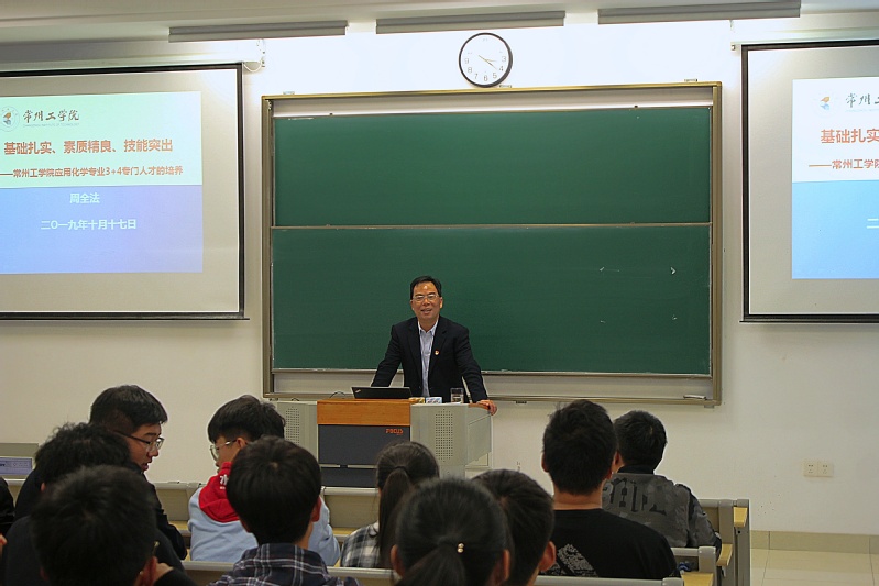 10月17日下午,在天枢楼B107教室举行的19应化主题班会上,副书记、副董事长周全法作为该班的特聘班导师为同学们讲了一堂生动的班课。