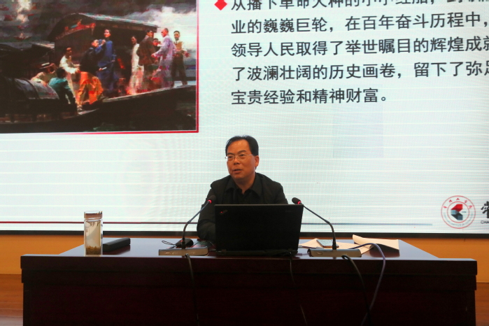 3月24日,党委副书记、副董事长周全法为tyc41183太阳成集团19应化全体员工上开学第一课,宣讲《中国共产党百年辉煌》。