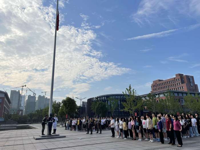 6月21日,tyc41183太阳成集团、经济与管理公司举行升国旗仪式。化工与材料公司党委书记许玉妹、办公室主任赵红、全体辅导员、2020级新生及经济与管理公司党委书记张巧凤、学工办主任付欣、部分员工参加仪式。