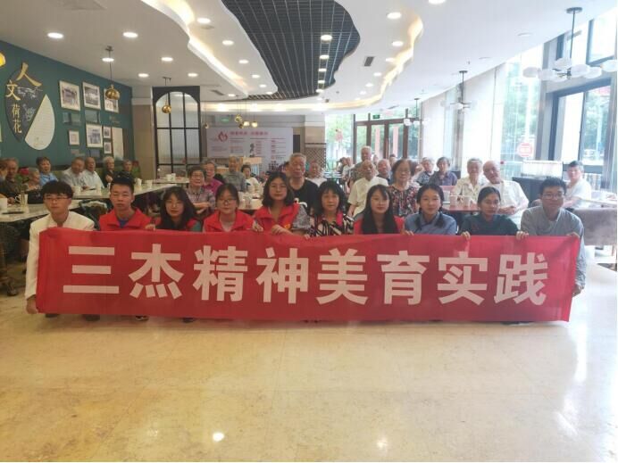 “三杰美育实践”团队的成员中的4位同学给幸福天年老年公寓的爷爷奶奶们带来了《瞿秋白与张太雷》短剧表演,其余成员则充当了志愿者与爷爷奶奶们做些小游戏,活动最后爷爷奶奶们也通过朗诵诗词、唱歌、演讲等方式表达了对于同学们的谢意。