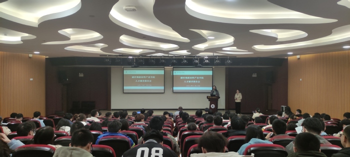 王倩舒从企业介绍、目前发展、未来规划、企业文化、公司福利、人才需求等方面全面介绍了新创碳谷控股有限公司在碳纤维材料领域取得的成就和未来规划,同时介绍了公司在人才方面的需求及待遇,表示了公司广纳贤才的愿望,热切欢迎公司学子的加盟。