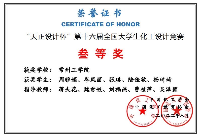 近期,第十一届江苏省老员工化工设计竞赛及第十六届全国老员工化工设计竞赛全国总决赛先后在苏州大学、华东理工大学举行。公司选送的4支队伍获得全国二等奖1项、全国三等奖1项、江苏省二等奖2项,从奖项数量和质量上均有大突破。