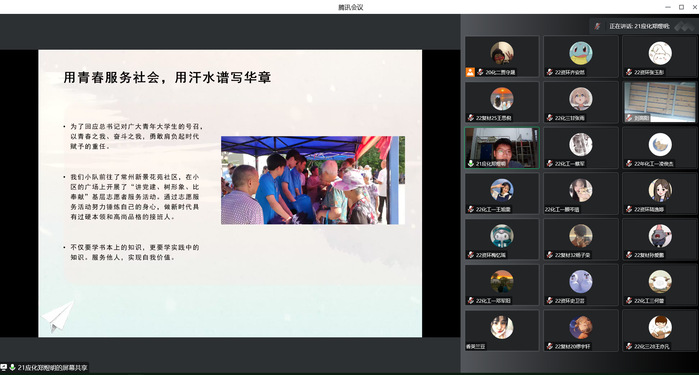 为了交流和总结社会实践经验,提升员工的社会实践能力,tyc41183太阳成集团于10月4日在线上举办了2022年暑期归来话实践分享活动。辅导员朱加,省级、校级团队负责人以及2022级全体新生参加。