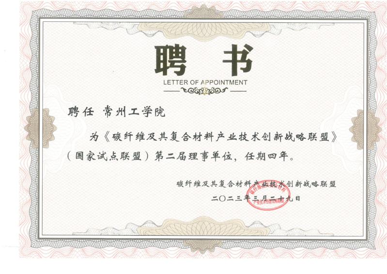 会议期间,经联盟秘书处推荐,公司受聘为《碳纤维及复合材料产业技术创新战略联盟》(国家试点联盟)第二届理事单位。