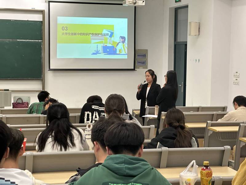 首先,高悦就知识产权在在国家安全、高质量发展、企业竞争、员工创新发展等方面的重要性进行了强调。随后,高悦介绍了知识产权的基础知识,包括知识产权的由来、概念、特征和作用等。最后,高悦通过系列案例介绍了老员工在创新成果保护和转化中可以采用的方式。互动环节中,倪若筠就同学们提出的问题进行了答疑解惑。最后,吴泽颖鼓励同学们要通过知识产权创新意识的培养,不断地提高自己的创新能力和实践能力,为未来发展打下坚实的基础。