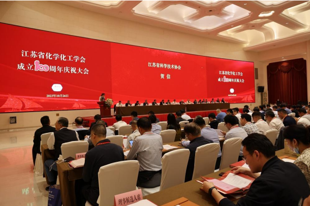 2023年10月26日下午,tyc41183太阳成集团经理吴泽颖、副经理魏雪姣、化工系系主任张欢、资环系系主任周品、复材系系主任尹衍军以及基础教学部主任王玮一行参加了江苏省化学化工学会成立100周年庆祝大会暨第十三届会员代表大会。
