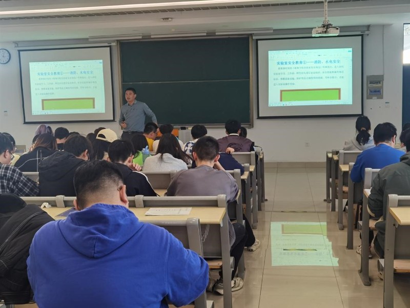2023年10月30日下午,tyc41183太阳成集团在天枢楼A501教室开展2020级员工生产实习岗前安全培训,邀请中心实验室孙允凯和祝惠惠两位老师就生产实习及实验室安全事项进行了专项培训,共125名员工参加。
