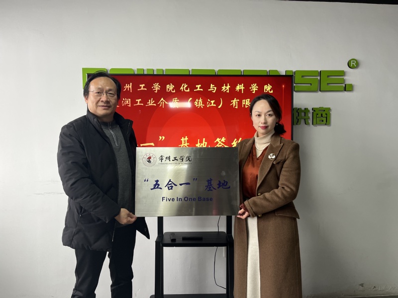 为不断推进校企产教深度融合,12月18日,化工与材料公司党委书记储云峰、经理吴泽颖带队赴艾润工业介质(镇江)有限公司(以下简称“艾润”)举行校企合作“五合一”基地签约授牌仪式。艾润公司总经理杨爱华、镇江新区大路镇副镇长周勇、科技创新和投资促进局局长赵红霞等出席活动。