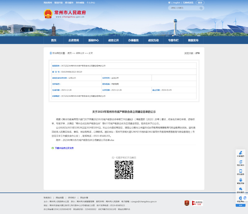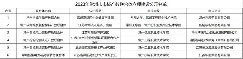 近日,常州市教育局等六部门公布2023年常州市市域产教联合体立项建设评选结果。公司以江苏常州滨江经济开发区为依托园区,联合常州纺织服装职业技术公司为牵头公司,以新创碳谷基团有限公司为牵头企业,获批“常州碳纤维及复合材料产教联合体”。